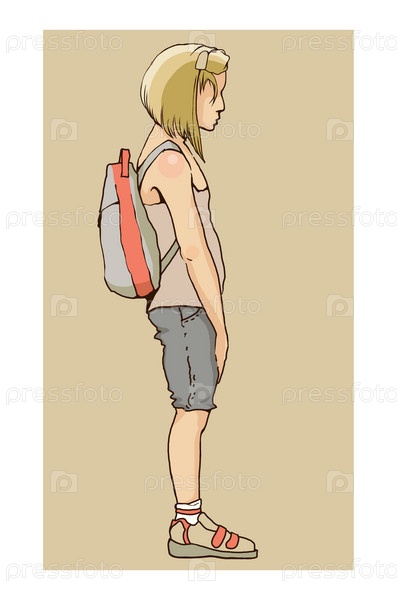 Маленькая грустная девочка с рюкзаком, иллюстрация