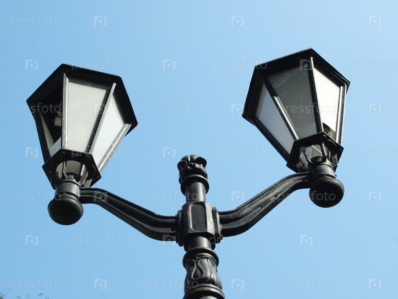 Уличный фонарь с двумя лампами в дневное время суток