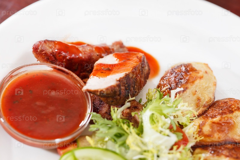 Приготовленное на гриле мясо с овощами