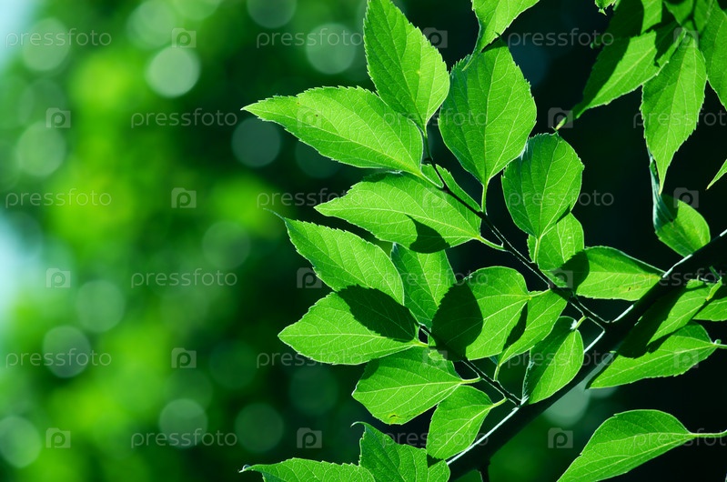 Ветка с зелеными листьями в городском парке в весенний день