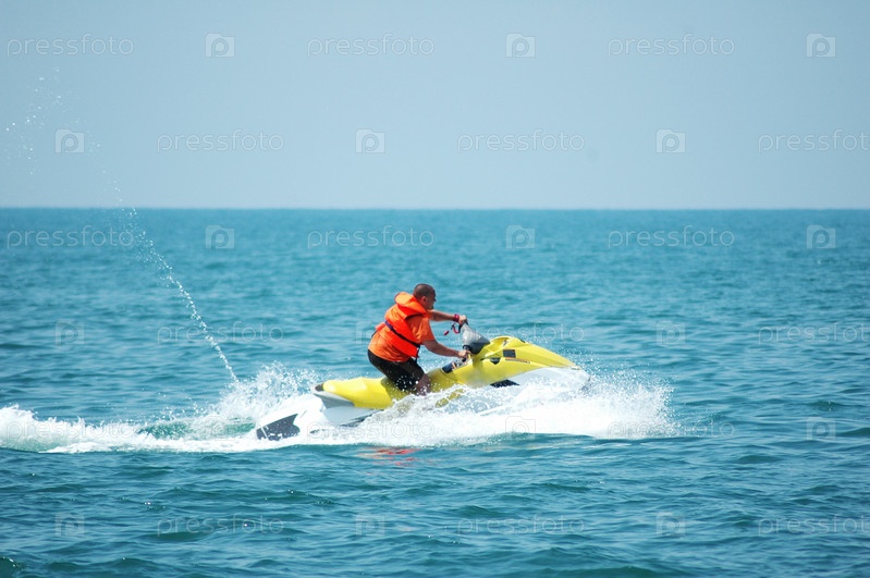 Человек за рулем скутера в море