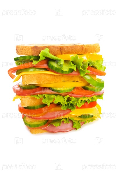 Гигантский бутерброд, изолированный на белом фоне