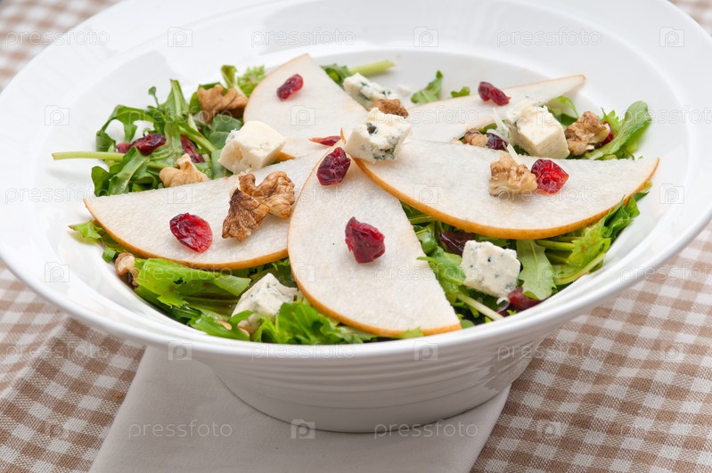 Салат - свежие груши, руккола, сыр горгонзола