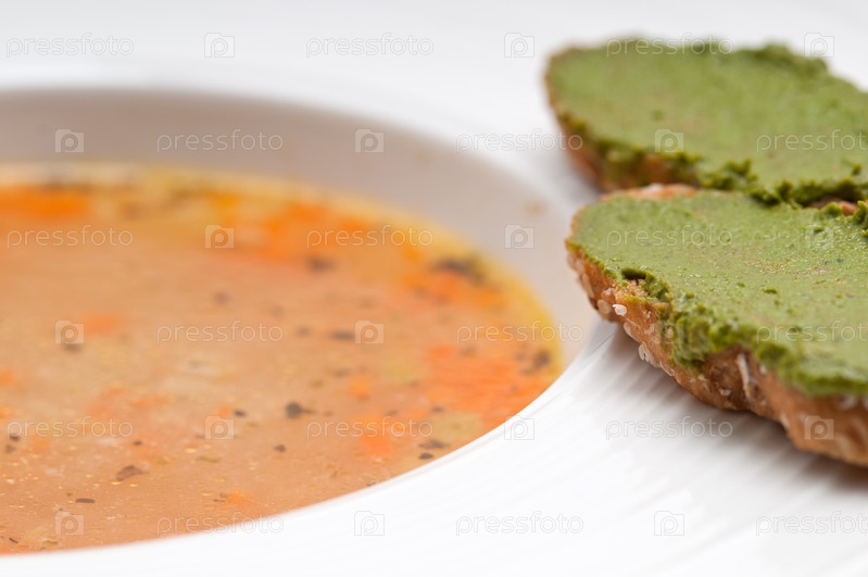 Итальянский суп минестроне с песто кростини
