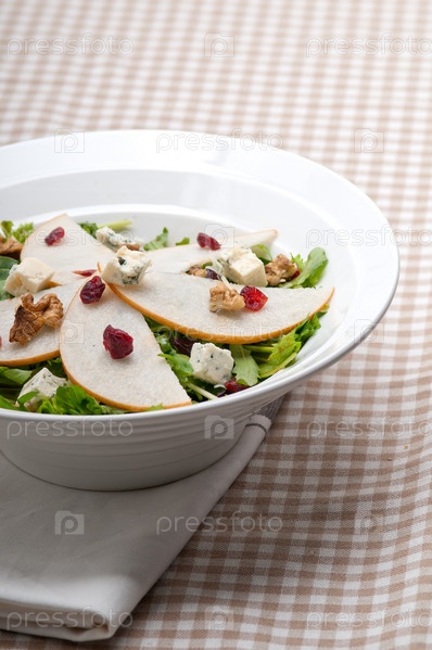 Свежий салат с грушей, рукколой и сыром горгонзола