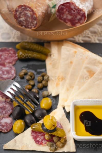 Холодная закузка с лавашом и соленьями