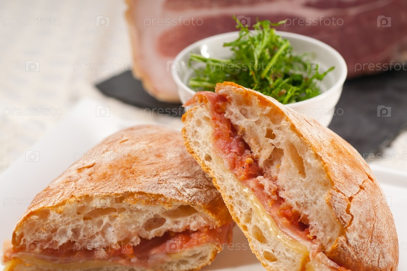 Бутерброд чиабатта панини с пармской ветчиной и помидорами