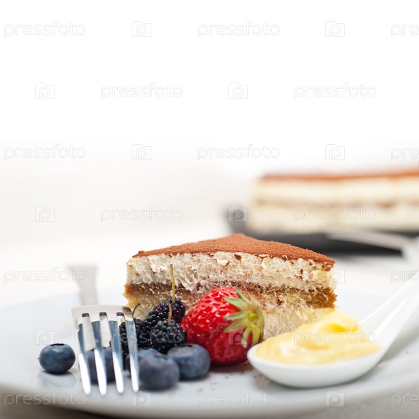 Десерт тирамису с ягодами и сливками
