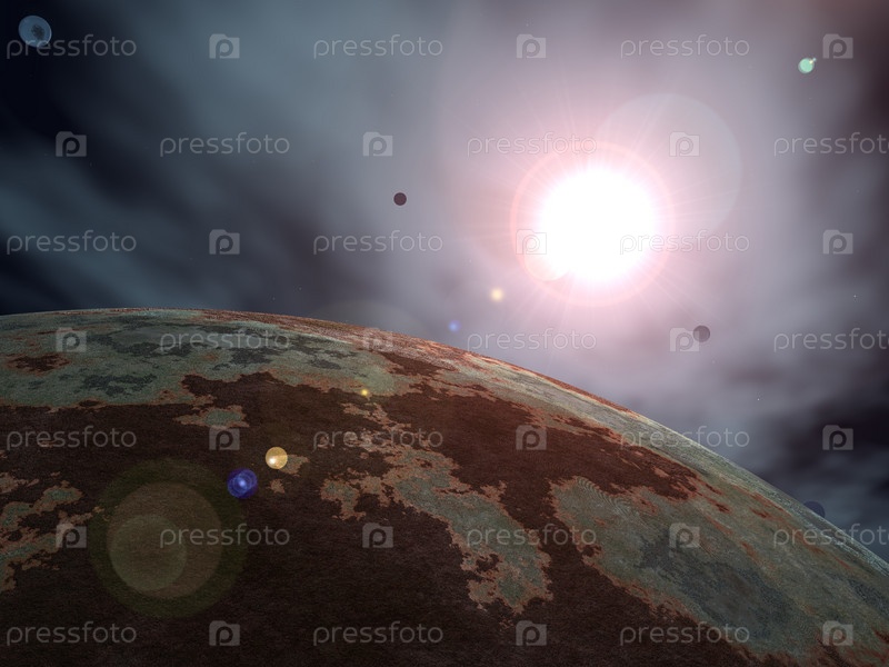 Восход звезды на фоне планеты