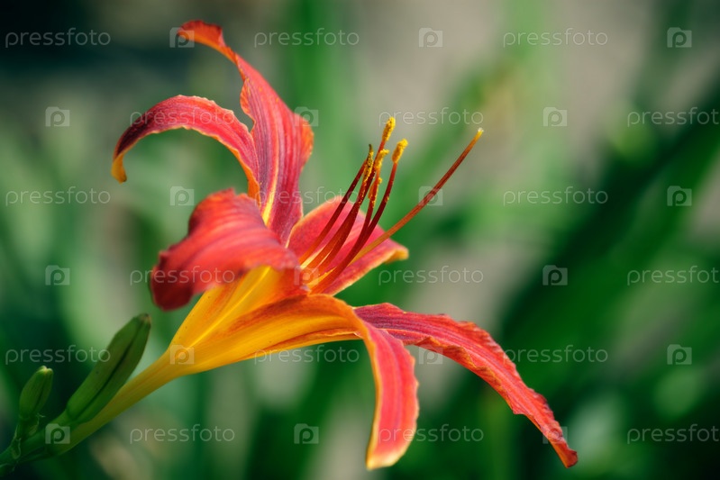 Красная лилия летом в городском парке