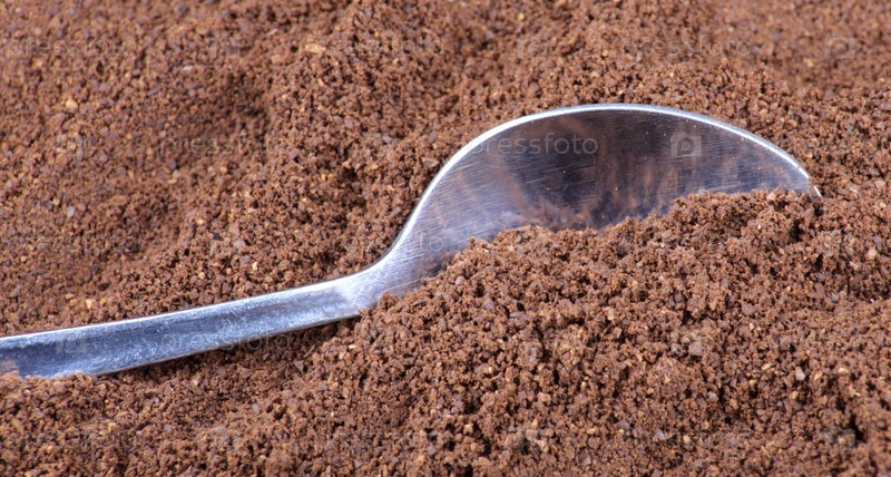 Чайная ложка в молотом кофе