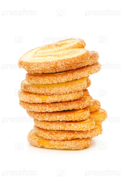 Печенье выложенное в стопку, на белом фоне
