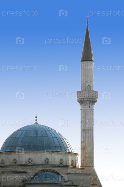 Минарет и купол мечети на фоне неба