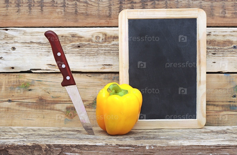 Перец, нож и доска на деревянном фоне