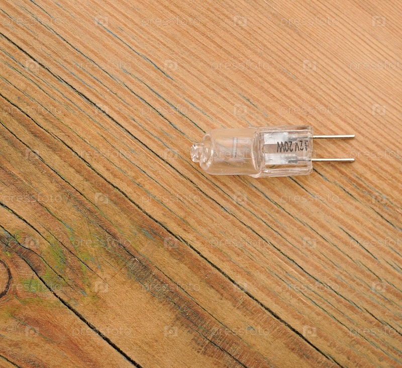 Галогенная лампа на деревянном столе