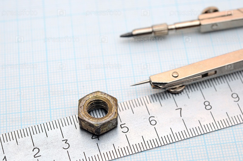 Геометрия, компас и линейка на миллиметровой бумаге
