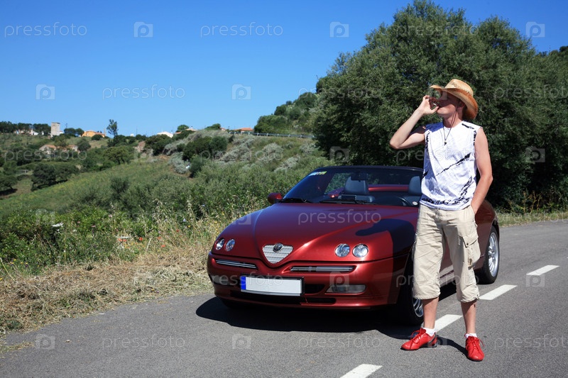 Мужчина в шляпе стоит у кабриолета. Сардиния, Италия