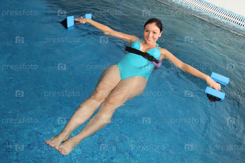 Беременная девушка занимается в бассейне