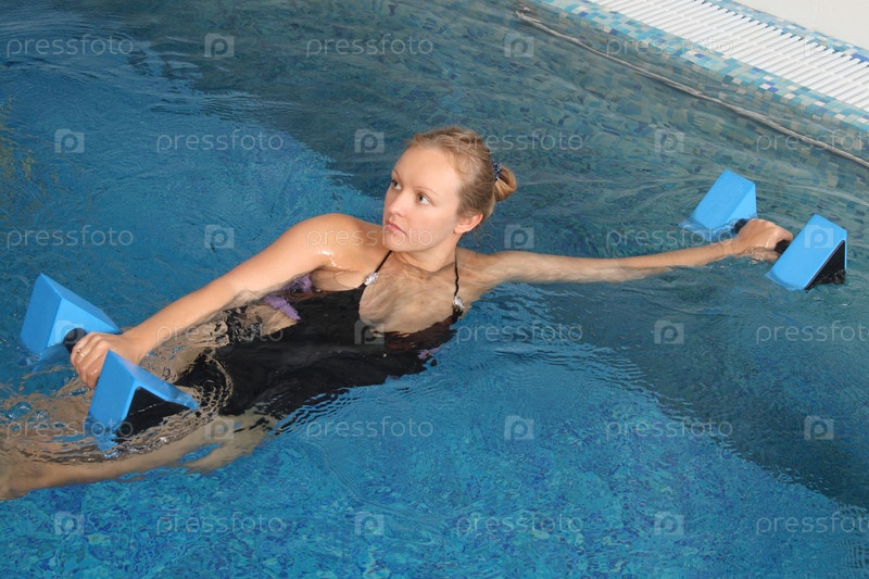 Беременная девушка занимается в бассейне
