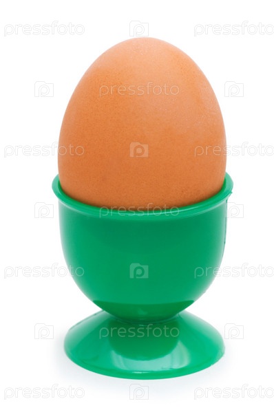 Яйцо в подставке для яиц на белом фоне