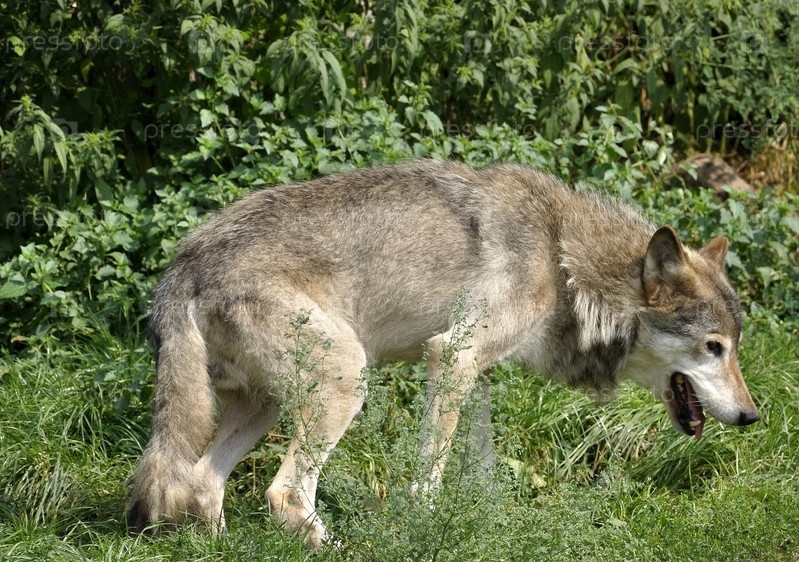 Волк на фоне кустарников
