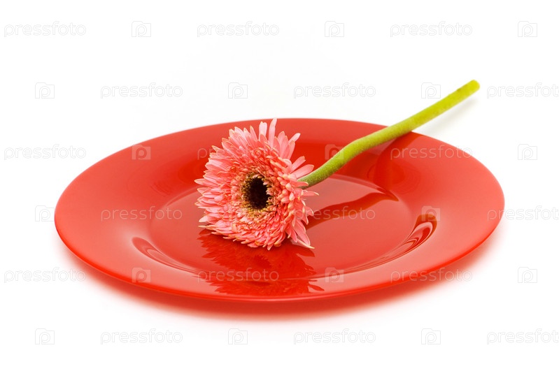 Цветок на красной тарелке