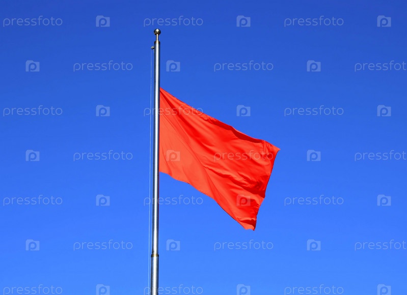 Ярко красный флаг на фоне голубого неба