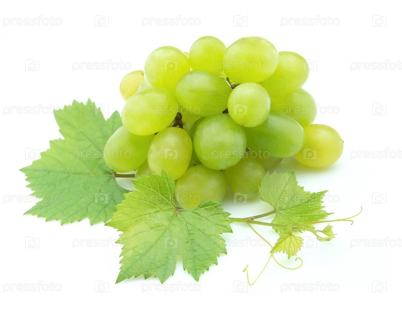 Гроздь винограда с листьями на белом фоне