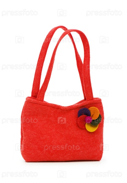 Женская красная сумка на белом фоне