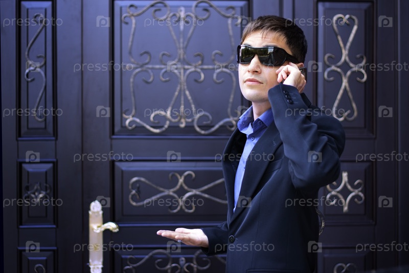 Мужчина в черных очках разговаривает по телефону
