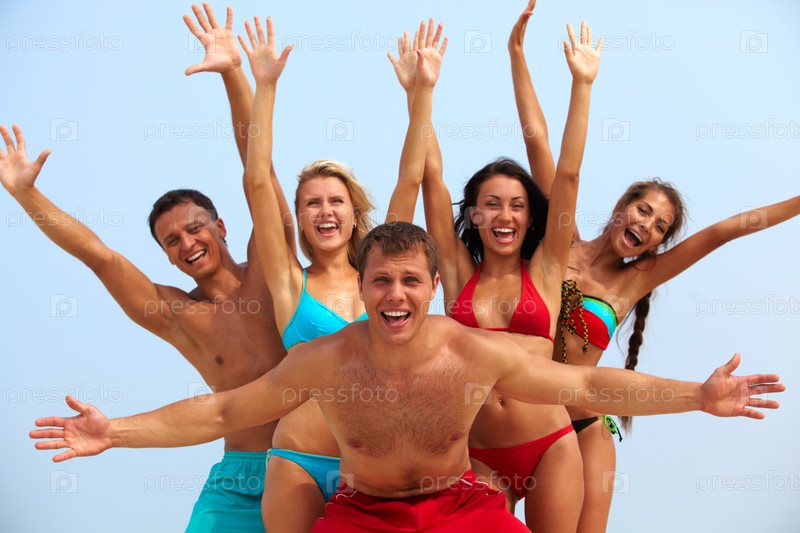 Молодые люди веселятся на пляже