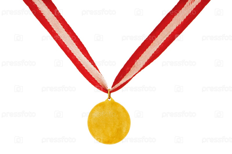 Золотая медаль на ленте, изолированная на белом фоне