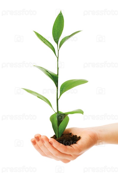 Зеленый саженец в руке изолированный на белом