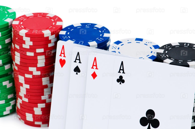 Карты и стек фишек, изолированные на белом фоне