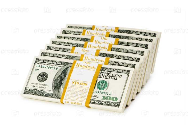 Пачки американских долларов, изолированные на белом фоне
