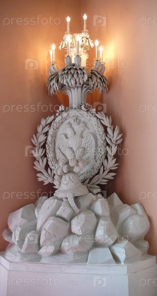 Большой серый светильник с гербом в углу