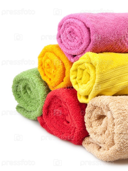 Яркие полотенца на белом фоне