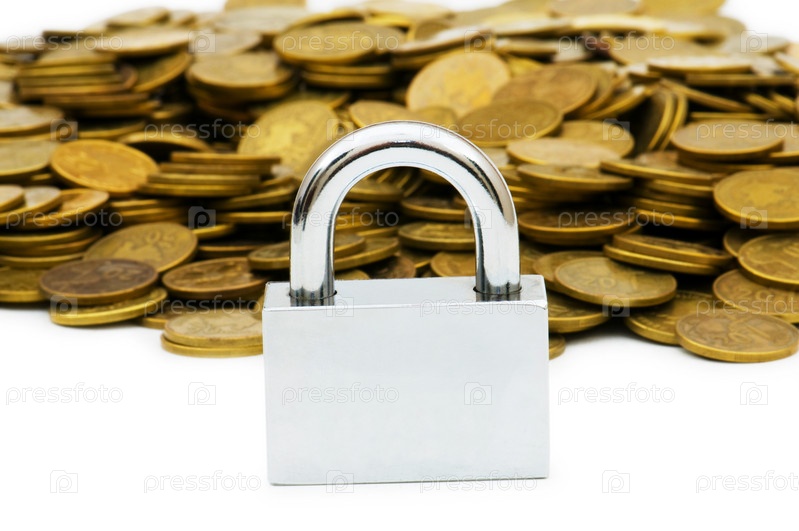 Концепция финансовой безопасности с помощью замка и монет