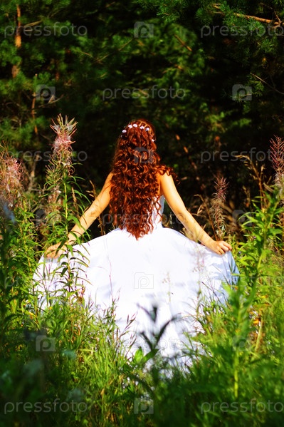 Девушка в белом платье в лесу