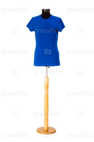 Синяя футболка на манекене на белом фоне
