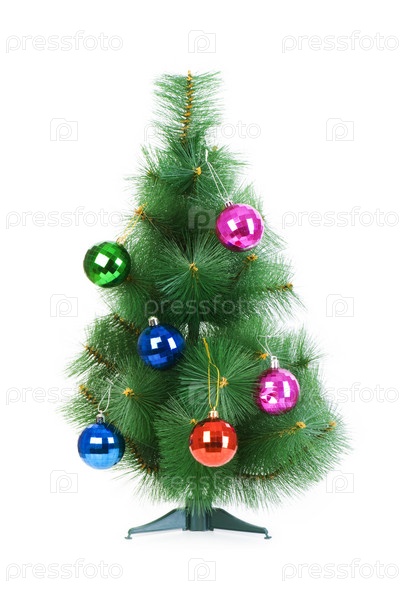 Искуственная новогодняя елка на белом фоне