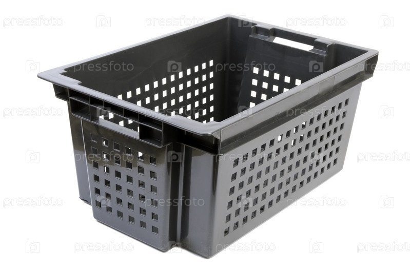 Черный пластиковый контейнер с квадратными отверстиями на белом фоне