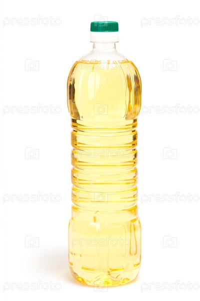 Бутылка растительного масла на белом фоне