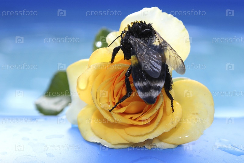 Шмель на цветке розы