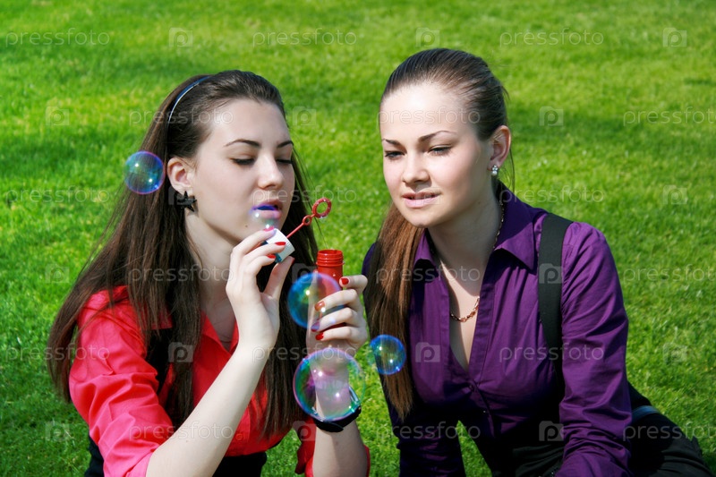 Молодые девушки пускают мыльные пузыри