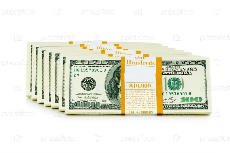 Стопка американских долларов на белом фоне