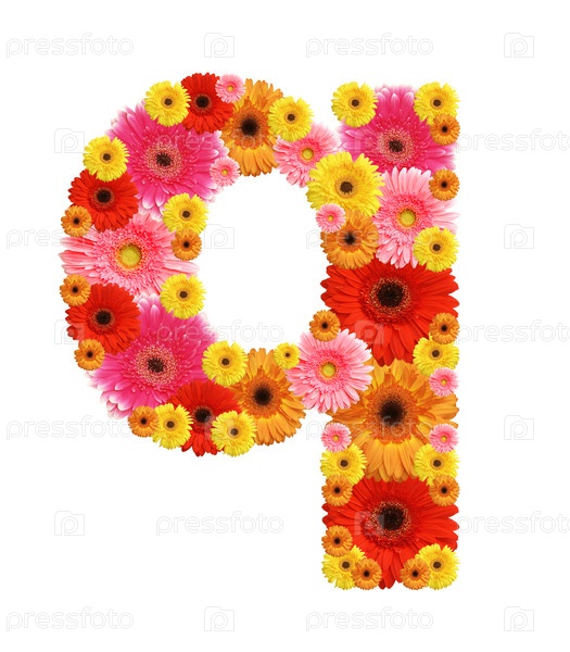 Буква 'q' из цветов на белом фоне