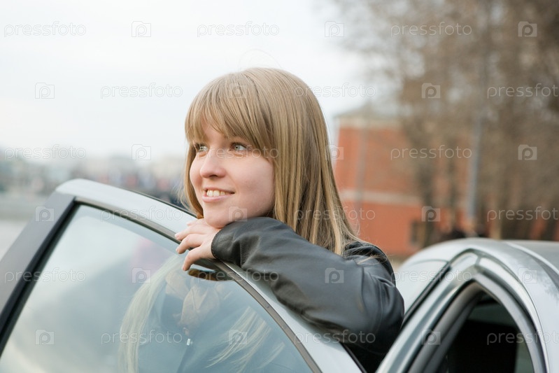 Портрет улыбающейся девушки у машины