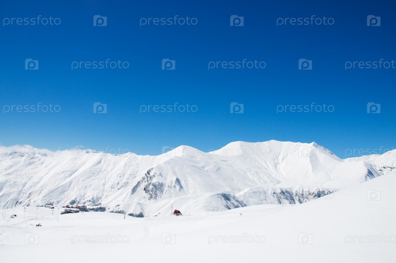 Вид на высокие заснеженные горы