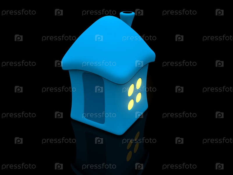 Голубой 3-D дом на черном фоне